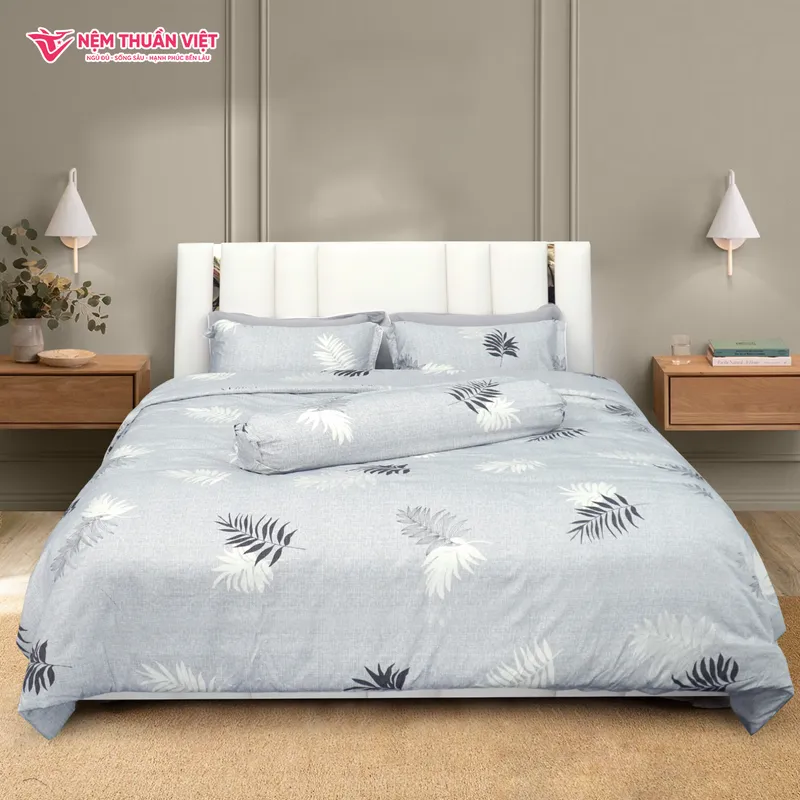 Mịn màng từ cái chạm tay, cảm nhận hết sự êm ái mát lạnh đặc biệt từ sợi vải. BST chăn ga Thuần Việt lấy cảm hứng từ những gam màu nhẹ nhàng kết hợp với họa tiết bắt mắt, tạo điểm nhấn cho căn phòng, giúp không gian phòng ngủ của bạn trở nên tươi mát, trong lành.