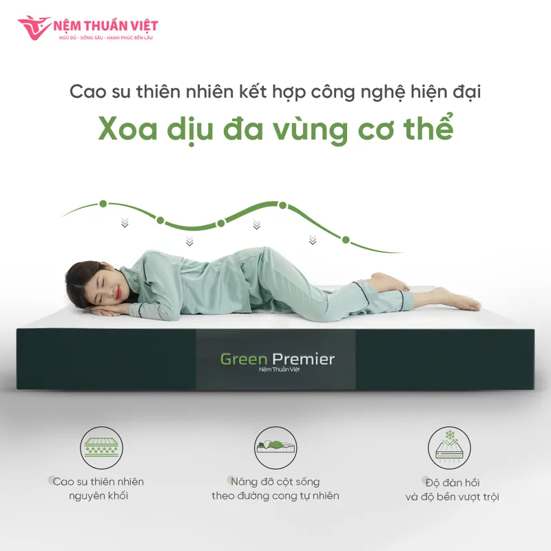 Nệm Cao Su Thiên Nhiên Thuần Việt Green Premier