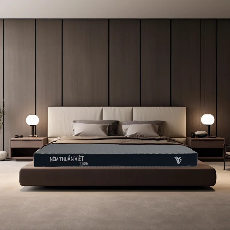 Nệm cao su thiên nhiên Thuần Việt Titan Grey là giải pháp hoàn hảo cho giấc ngủ ngủ ngon trọn vẹn. Hội tụ đầy đủ các tiêu chuẩn nâng đỡ, êm ái và bền bỉ vượt trội, giúp xoa dịu những cơn đau giúp người nằm chìm vào giấc ngủ ở trạng thái tự nhiên và thoải mái