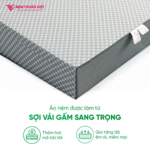 Nệm cao su Thuần Việt Latex được sản xuất chính hãng mang thương hiệu Nệm Thuần Việt, cam kết chất lượng và an toàn sức khỏe cho người sử dụng.